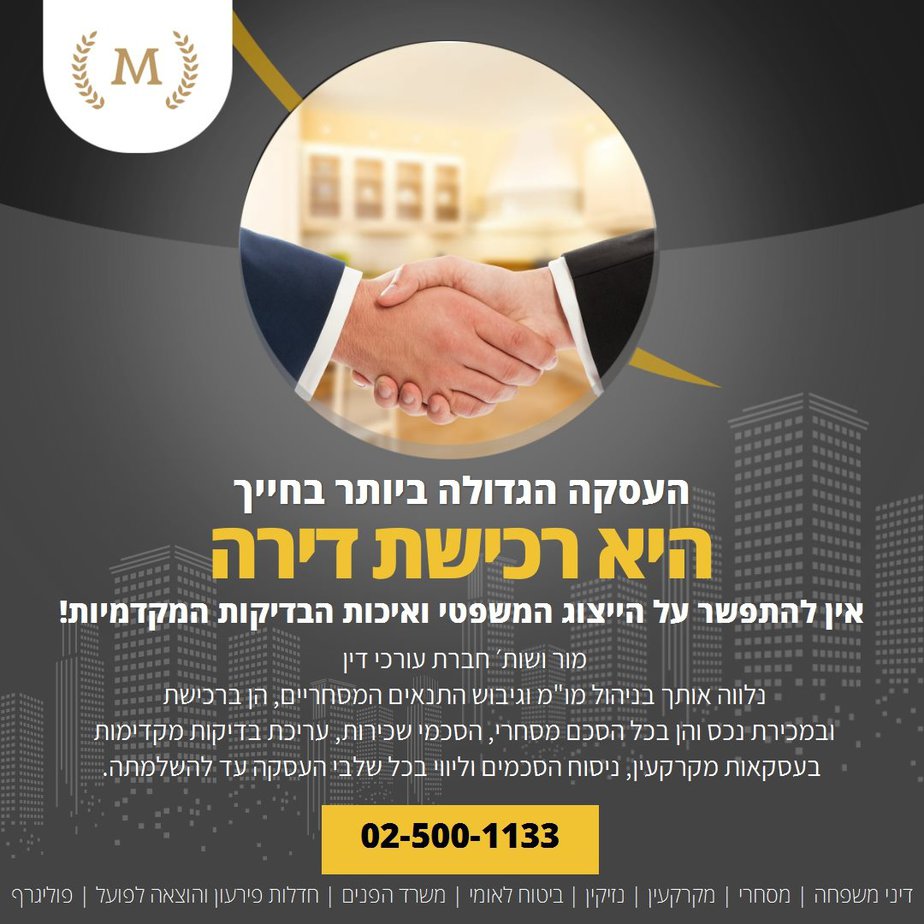 For legal advice on real estate matters, call now 02-595-3322 / or send a WhatsApp message to the number: 050-441-1434 or send a request in the online form below and we will get back to you